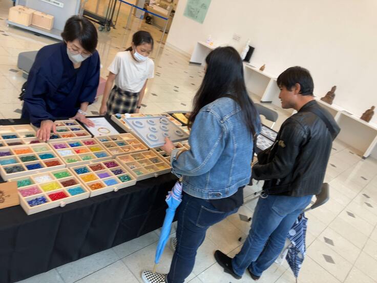 浄教寺では、眠っていた文化財の修復と展示公開、心を静める苔の中庭、光が織りなす幻想的な本堂、人々が集うワークショップを計画しました。薬師寺東京別院での写経、知恩院和順会館での塗り絵写経、近隣の禅長寺での腕輪数珠体験。これらの体験は、浄教寺独自のワークショップを生み出す原動力となりました。生誕850年記念特別展「紀州・明恵上人伝」の開催を記念し、ロビー前で腕輪数珠ワークショップを開催することができました。