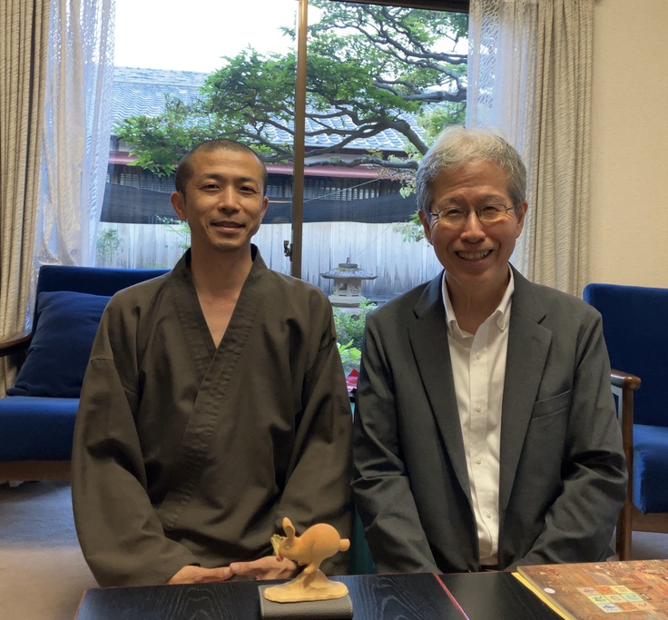 今回の応援メッセージを書いてくださった西山厚先生との出会いは、2年前に突然お寺を訪問したいというご連絡をいただいたことから始まりました。予定していた時間にお待ちしておりましたが、先生は1時間遅れて到着されました。名刺もいただけず、その時は先生がそれほど著名な方とは存じ上げませんでした。住職は、法務の合間に山で伐採作業をしていたため、「1時間あればもう1本木を切れたのに」と残念に思っていました。