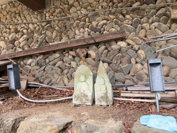 皆で力を合わせ、ようやく石仏を内崎山の花舞台の下に安置することができました。その場で改めて手を合わせ、長年の祈りの歴史に感謝し、これからの平穏を心から願いました。まだお社を建てる余裕はありませんが、クラウドファンディングの支援が多く集まれば、祠を建てたいと願っています。