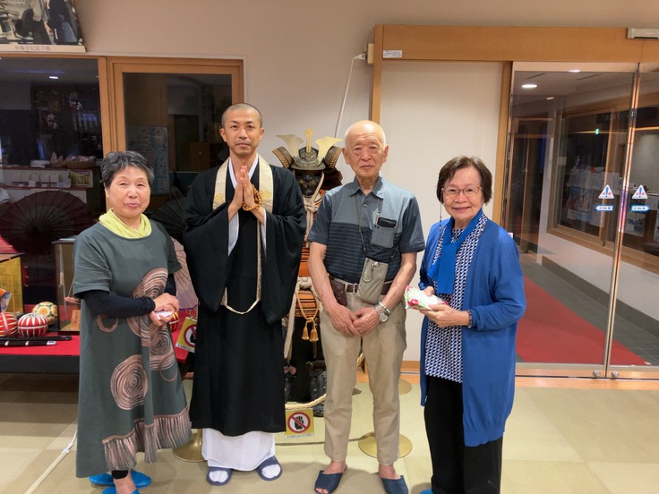 本来なら月曜日に来られるはずだった千葉県から、クラウドファンディングで内崎山法蔵寺の復興を支援してくださった方にお会いすることになりました。22日は葬儀告別式や巡教の都合で日程が合わず、急きょこの夜に。昼間は副住職が案内しました。