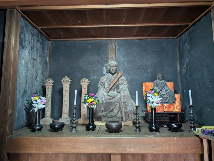 中央が、650年遠忌を迎える、妙感寺開山の微妙大師像です。