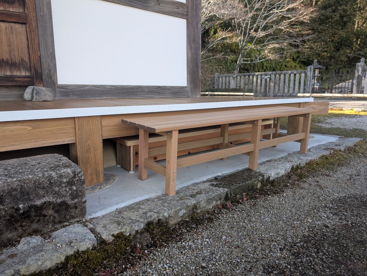 本堂の壁と縁側を中心に補修を行いました。かなり綺麗になりました。
