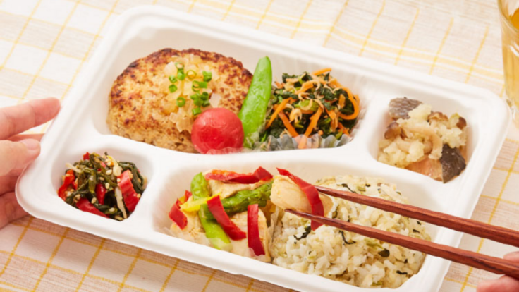 お届けするお弁当は、調理済みの冷凍弁当です。管理栄養士が一からレシピを開発しています。1食あたりに主食・主菜・副菜が含まれており、15種類以上もの食材が使用されているので、バランスよく食べ応えのある内容となっています(1食あたりに含まれる栄養素:たんぱく質26g、葉酸237µg、ビタミンD4.5µg、鉄6.4mg、亜鉛3.6mg、塩分2.0g未満※2022年2月時点の平均値を記載)。