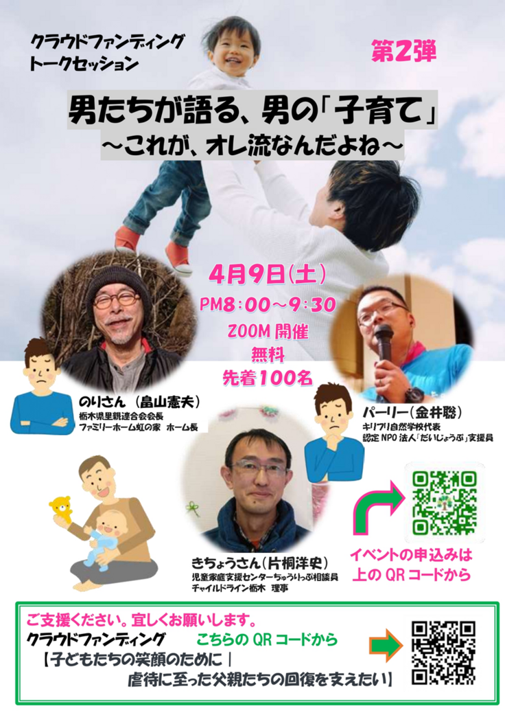 ・クラウドファンディングにおいて実施した父親プログラムのオンライン報告会にご案内いたします。