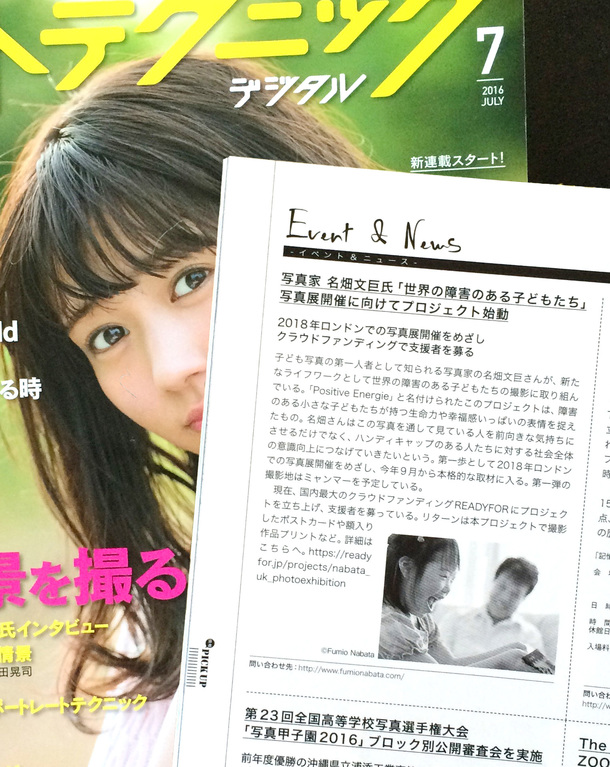フォトテクニックデジタル2016年7月号(玄光社)にてプロジェクトが紹介されました。