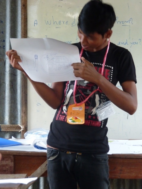 4) SKOメンバー(3人ほど)に書いてもらった絵についていくつかインタビュー形式で質問をする。