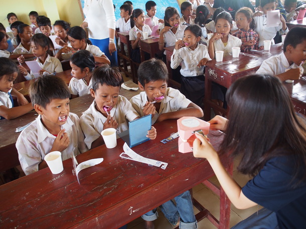 私は1年目のNACEFの活動だったため、初めてのことが多く、先輩方についていくという形が多かったのですが、先輩方がカンボジアの子どもたちのために活動する姿はとても生き生きしていて、「どのようにすれば子どもたちが興味を持ってくれるだろうか?」「子どもたちの生活環境に合う衛生教育はなんだろう?(カンボジアは水が貴重な資源のため、水を少なく使っての歯磨きの仕方のような、生活環境に合った衛生教育など)」と、沢山の思いを持ちながら懸命に取り組む姿は、とても輝かしい姿でした。その姿と先輩方のカンボジアでの活動の話を聞きながら、自分も「子どもたちのために!!」という思いが高まっていきました。