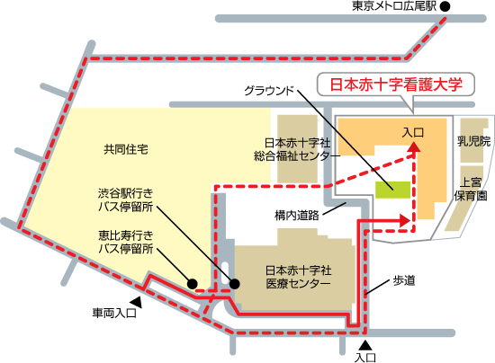 - JR渋谷駅より都バス(学03) 日赤医療センター前行 終点下車