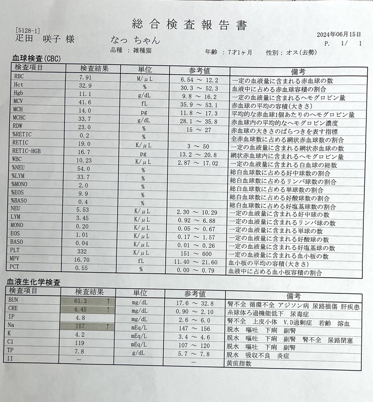 それまでの間になっちゃんの体調が悪くなったり、何か変わったことがあった場合、直ぐに病院へ行きます。