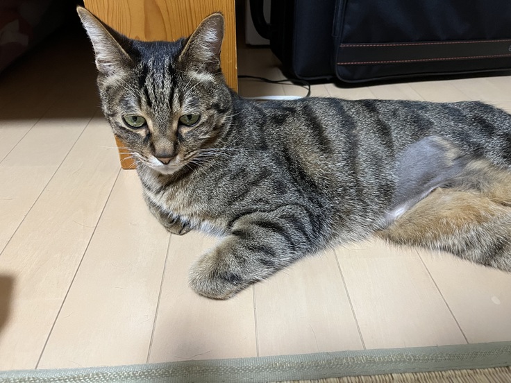 お腹の毛を剃られたなっちゃん🐱