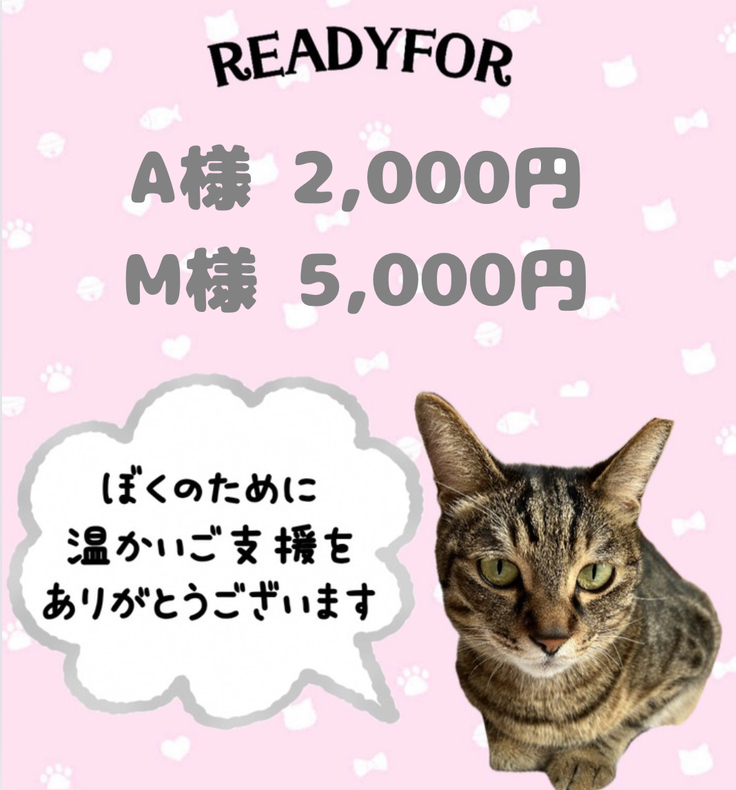 6月14日~20日16時の間に、代理でご支援くださった5名様の支援金を本日入金致しました。