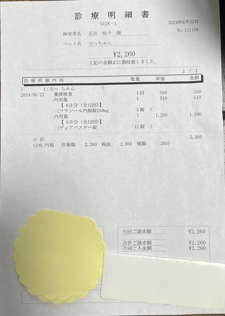 昨日、なっちゃんが久しぶりに下痢をしてしまい、病院で糞便検査をしました。