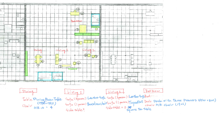 今回実現を目指す「Row Houses」(1931)は、彼の代表作である「バルセロナ・パビリオン」(1929)、「トゥーゲントハット邸」(1930)と同じ時期に構想された計画案です。