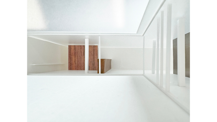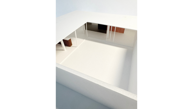 今回無料エリアに展示する「ロー・ハウス」は、建築家の巨匠ミース・ファン・デル・ローエがいくつもの計画案を残していますが、建物として "実在する" ものは世界にひとつもありません。参考になる写真や映像のない中で、残された図面や資料をもとに模型を作り、手探りで実現していくことになります。