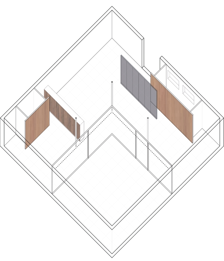 ②緑色の養生テープで囲ったエリアが、ロー・ハウス全体の広さ