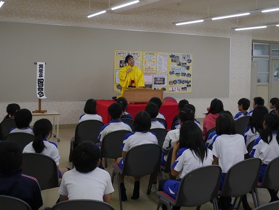 写真は先日「出前落語」で笑福亭智之介が自身の出身校である神戸市立灘小学校に行ったときの様子です。間近で見る落語は刺激的だったのか、終始大爆笑の出張授業になりました。