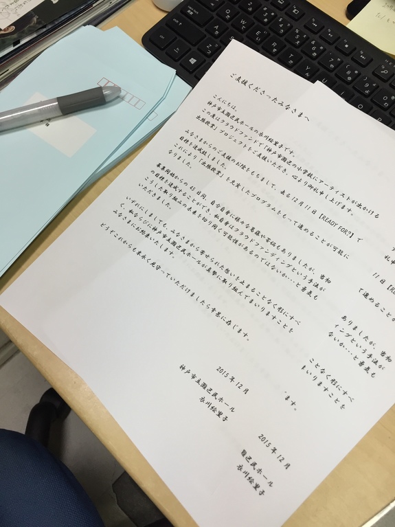 それから、3,000円ご支援くださった方へのお手紙を