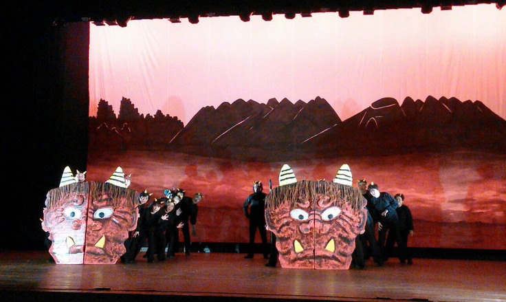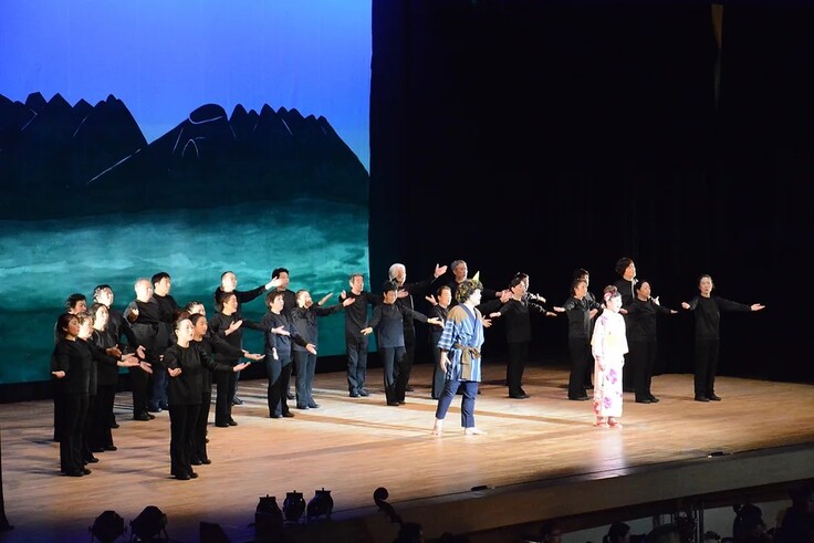 私たちは、結成以来、プロのソリストを迎えての舞台公演活動を行っています。2021年7月には、高崎芸術劇場(2019年9月開館)を舞台に、群馬交響楽団の演奏で、地域に素材を取った創作ミュージカル「おにころ」(原作・野村たかあき、作曲・演出・合唱指導は三澤洋史)を公演いたしました。プロのソリストとプロの演奏者、地元の人たちを三澤洋史さんがまとめ上げ、地域一丸となって演出されるこの舞台は、毎回多くのファンを集めています。