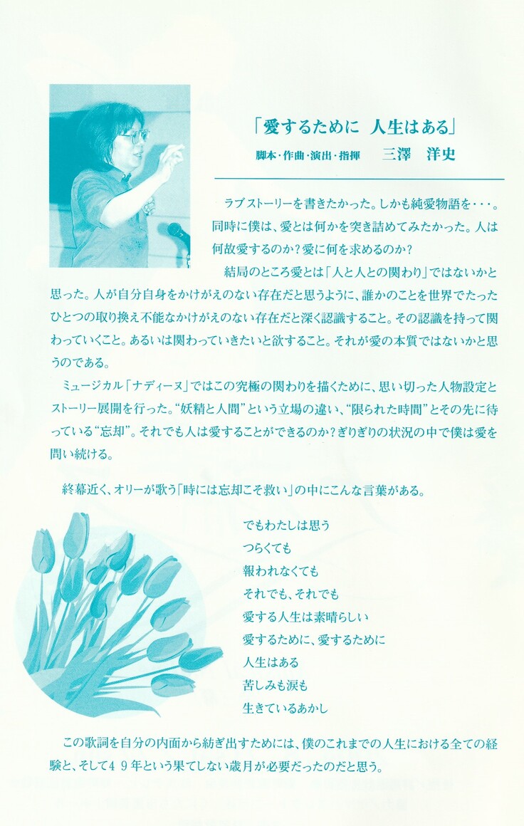 今回のプロジェクトでは、三澤洋史さんによるオリジナルミュージカル「ナディーヌ」を公演いたします。