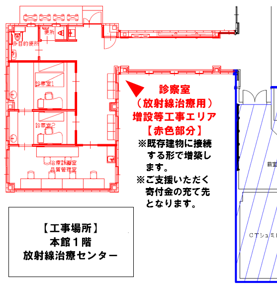 ②放射線治療用増設等工事エリア(図1の赤い部分)