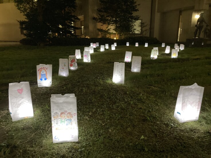 (※1)ルミナリエバッグ...がんと向き合っている人、がんで亡くなった人へメッセージやイラストを書いた白い袋。リレー・フォー・ライフ・ジャパンのイベント当日に会場に並べて、灯りがともされます。