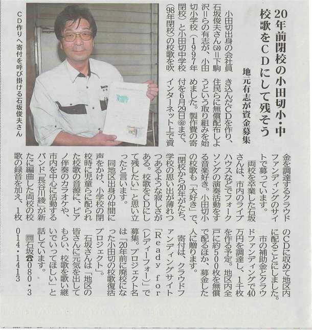 20年前に廃校になった小田切の校歌復活プロジェクト