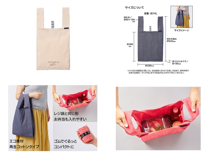 CO2の削減・水の節約にもなる、環境に優しい再生コットン糸から作られたデイリーバッグです。普段のお買い物に♪ ロゴも小さめで使いやすい商品となっております。※色はベージュのみ