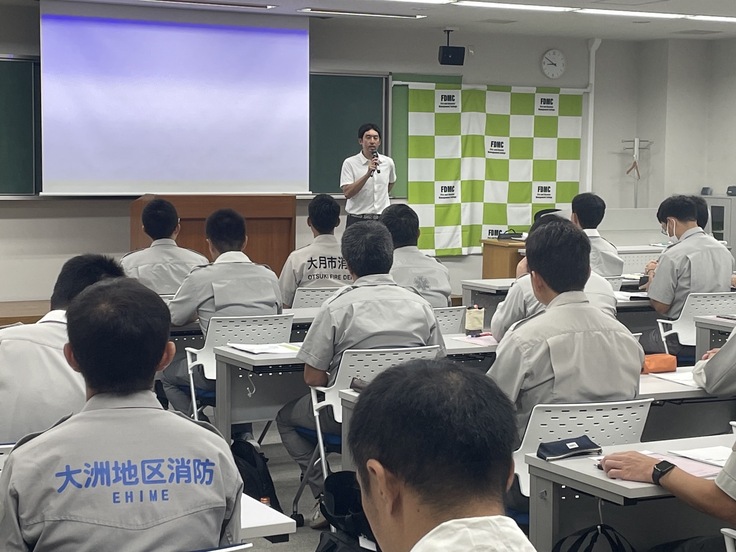 先日、東京の消防大学校にて我々の病院前12誘導心電図講習会を開催いたしました。消防大学校は総務省消防庁の研修機関であり、全国の消防本部から選抜・派遣された現役の消防職員の方々が集まる場所です。いずれも現場経験が豊富で、将来は組織の中核を担う方々ばかりです。心電図講習会では、受講された消防職員の皆さまの真剣な姿勢に大変感銘を受けました。特に胸痛を訴える患者さんに対して「心筋梗塞かどうか」を症状や12誘導心電図から判断し、搬送先へ的確に伝えることの難しさを感じておられることが印象的でした。講習後には多くの方が悩みや課題を共有してくださり、この学びを現場で活かし、自信を持って心筋梗塞の患者さんへ対応してくださると強く感じました。