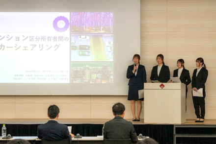 移動手段である車が殆どの時間は駐車場で利用されていない点に着目し、有効活用する提案が高く評価され、TEPCO賞を受賞しました。水野ゼミの学生は、2020年と2022年に優秀賞、2023年にTEPCO特別賞を受賞しており、今回で4回目の快挙となりました。