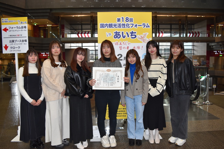 2024年2月15日(木)に名古屋国際会議場で開催された「第18回国内観光活性化フォーラム in あいち」において「学生がつくる愛知県の着地型旅行プランコンテスト」(主催:一般社団法人全国旅行業協会)の表彰式が行われ、優秀賞を受賞しました。