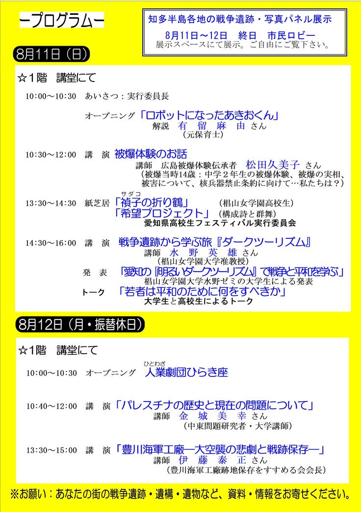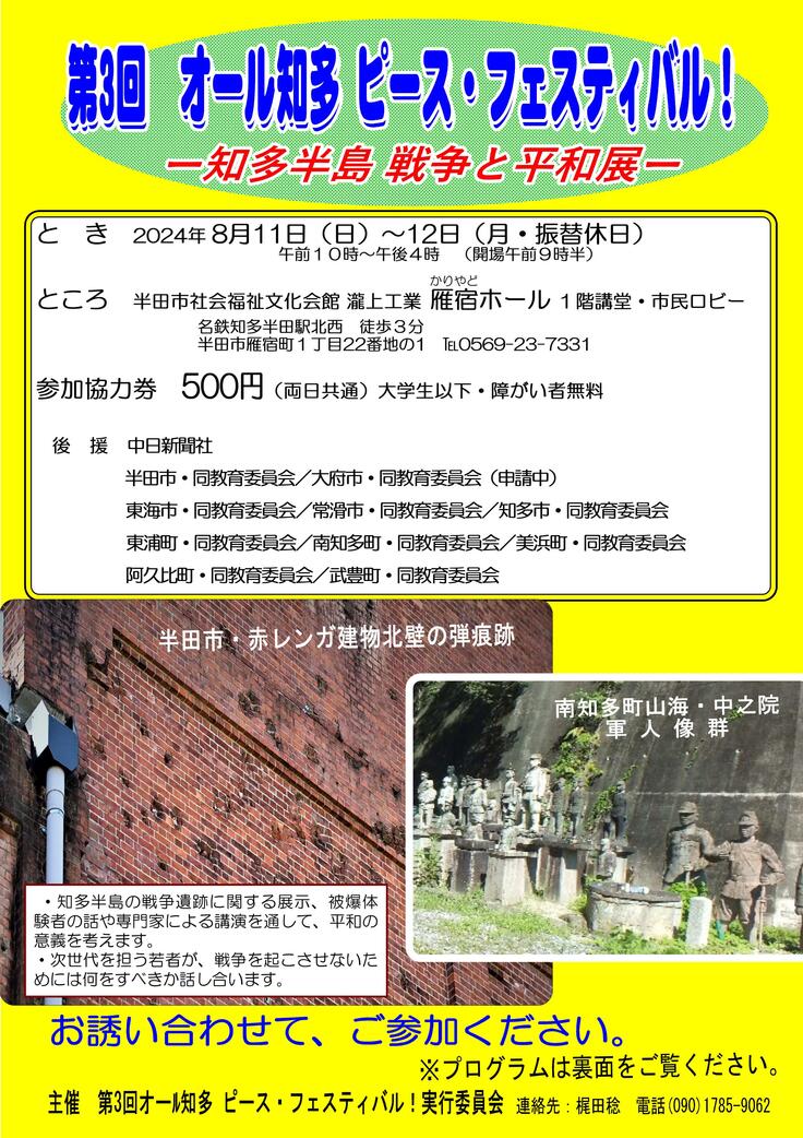 「第3回オール知多ピースフェスティバル」での発表のご案内