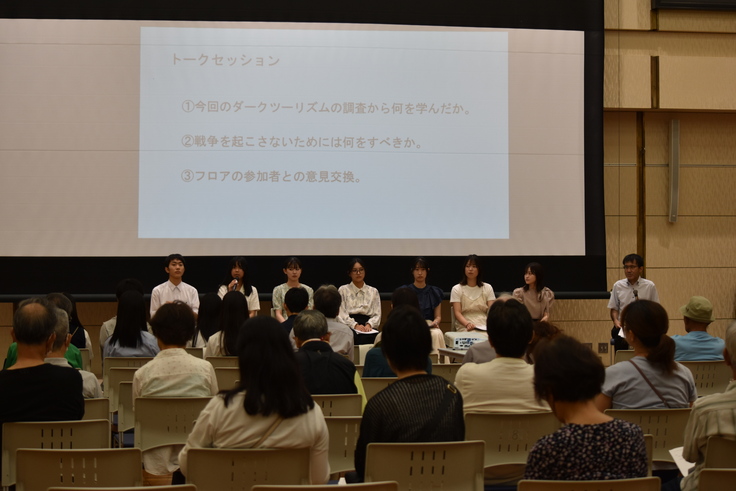 引き続き行われたトーク「若者は平和のために何をすべきか」では、平和のために何をしたら良いかを参加者を交えてグループワークで話し合いました。世代を超えた交流となり、活発な意見交換が行われました。