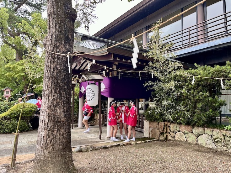 開始時間が近づいてくるにつれ、その本神輿と同じデザインの色違い……つまり皆様からのご支援で新しく作られた、長田神社様の『女性神輿』の法被姿の方々が着替えを終えて外に出てき始めました。
