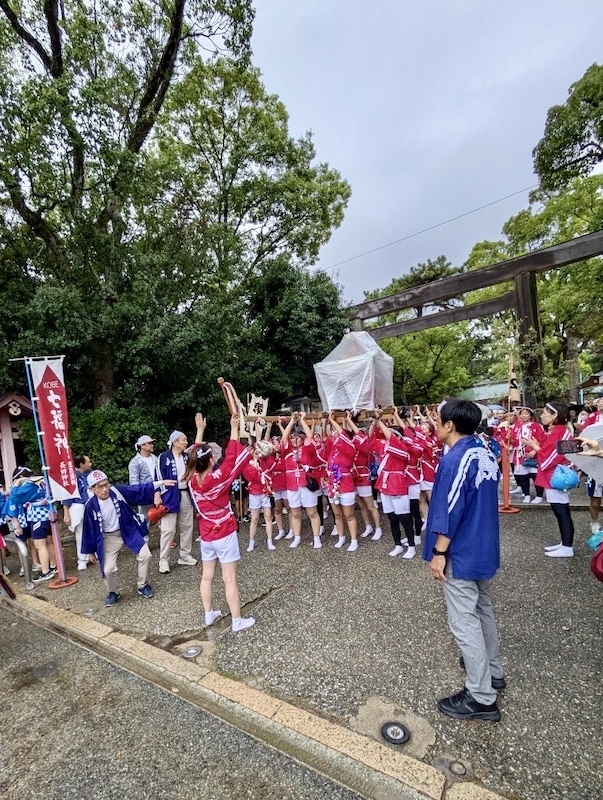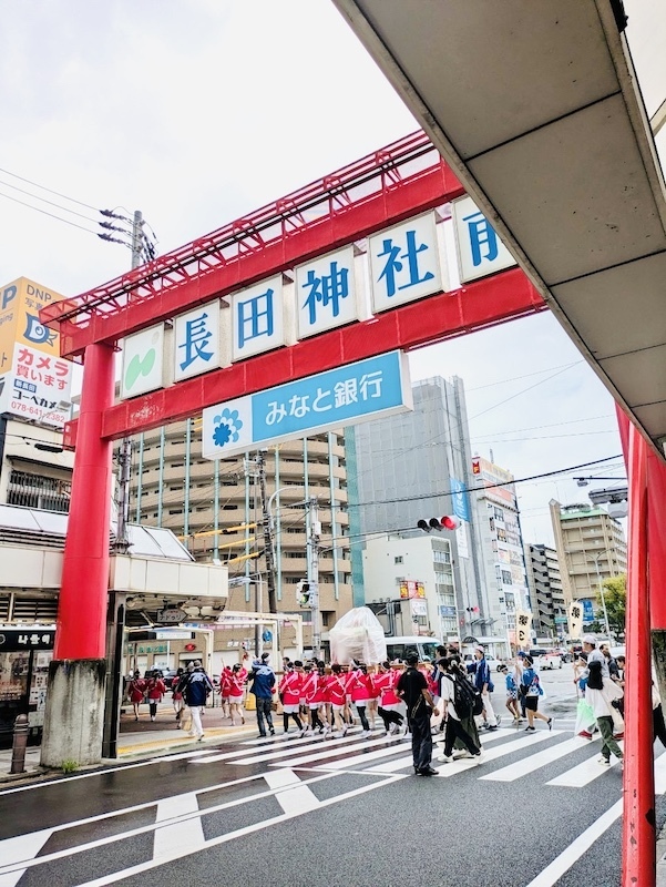 商店街ゾーンでのおねりが終えると、目の前には長田神社様です。表参道に移動して、鳥居をくぐるところは子どもたちの出番です。