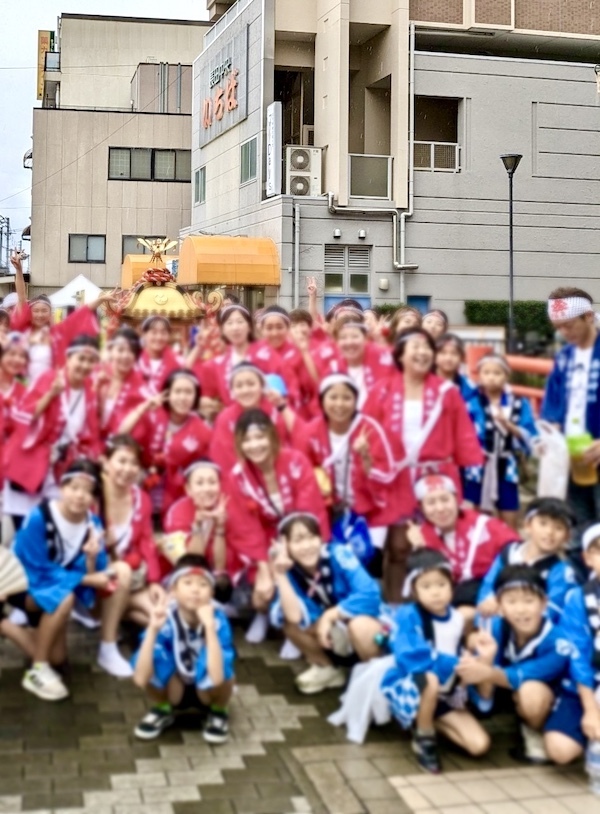 本当はボカシなんて取ってしまいたいくらい、この時の集合写真、みんなが楽しそうで笑顔なんです。しかも御神輿囲んで。。