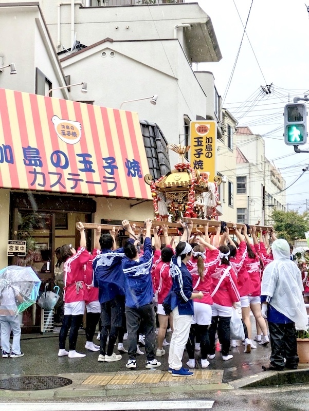 商店街ゾーンに入ると通路に屋根があるのもあり、とうとう御神輿の雨カバーが取られました! この時はテンションが上がりましたよ……✨