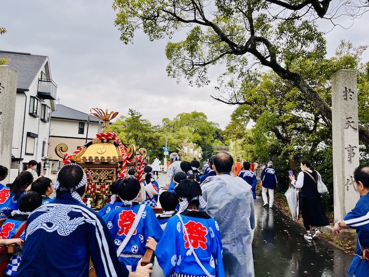 リーダーさん(←子ども)の「声出して行こうー!」に力寄せて、みんなで持ち上げて進みます。お宮はもう目の前です。