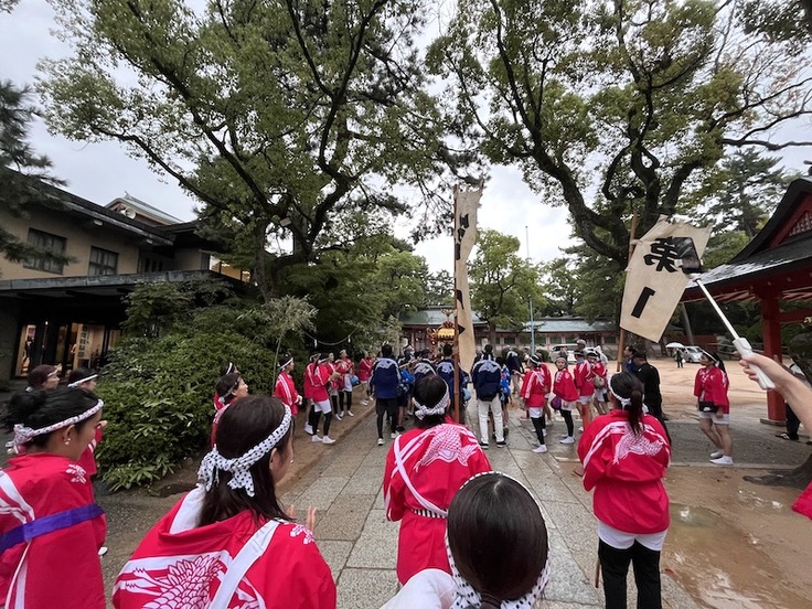 アーケードにてっぺんの鳳凰がぶつからないように、みんなで気を付けながら笑顔いっぱいで神様の御魂振りをさせていただきました!
