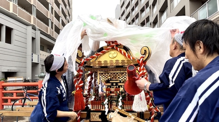 神様は『女性神輿』を神事として受け取ってくださったようで、本降りの雨の中の準備となりました。