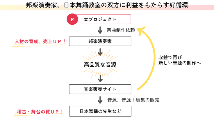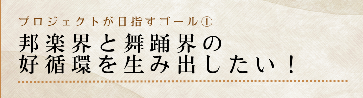 音源が素晴らしく、その方たちをお呼びして踊りたくても、叶う可能性は極めて少ないです。このプロジェクトにより、音源 ⇔ 日本舞踊家 ⇔ 邦楽演奏家といった循環が生まれ、より一層の発展と楽しみに繋がれたら幸いです。