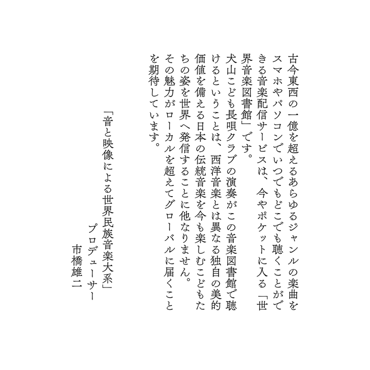 世界の諸民族、そして日本の各地に伝承される伝統音楽・芸能を集大成した音と映像による記録作品の制作に携わり、今も新しいメディアでの発信を続けるプロデューサーとしてご活躍されています。