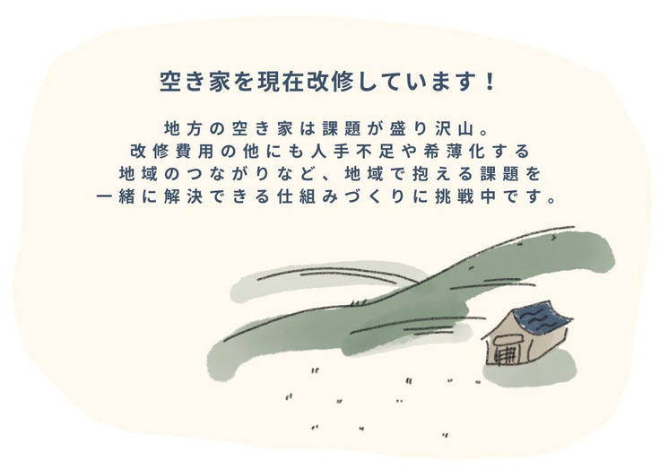 私たちはこの拠点を通じて、”空き家の 新しい家の作り方と使い方”を実現し、