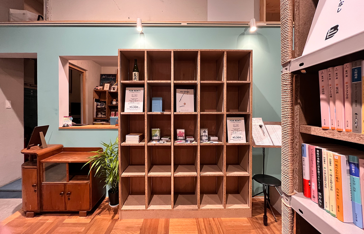 店内にはもうひとつ、レンタル本棚をつくりました。こちらは横幅27×高さ37.5×奥行34cm(内寸)サイズのスペースで25棚あり、ご希望の方にお貸しして一箱店主さんとして、ご自身が所有されている本やレコード・CD。VHSやLD、DVDなどを販売していただきたいと考え「NAgoya BOOK CENTER」の中にもうひとつの本屋「國際BOOKマーケット」をオープンします。