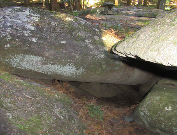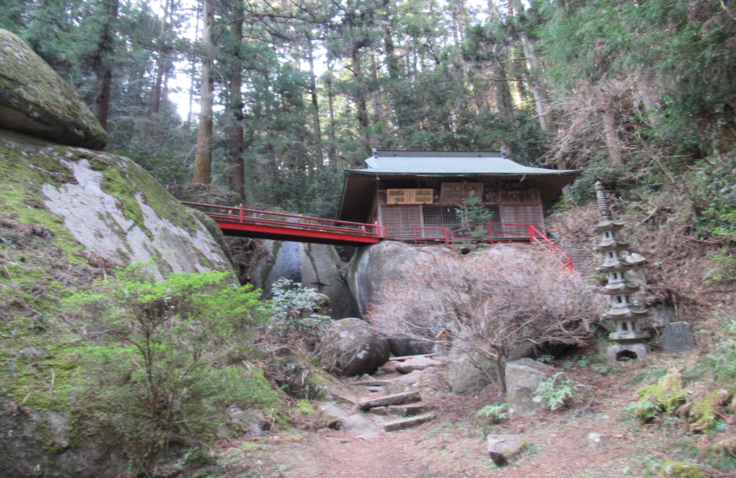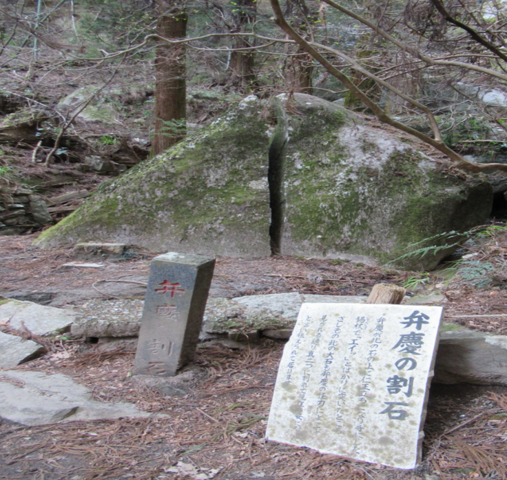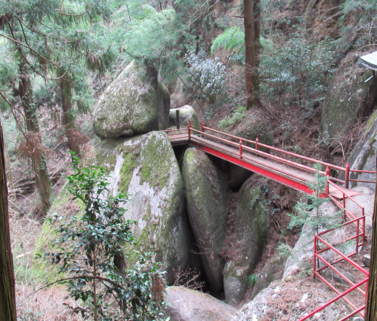 神社近くには「弁慶の手割石」と呼ばれる巨岩があり、あるアニメと関連しているとして、そのアニメファンからは「聖地」としても取り上げられています。また、弘法大師を案内した白蛇が岩の重なりの隙間にできている臥龍窟と呼ばれる穴の中に入り込み、そこから霊気が湧き出ているとの伝承もあるようで、パワースポットとしても注目されています。
