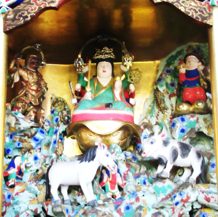 その後、神仏分離令により金蔵院の支配を離れ名草厳島神社となり、明治・大正・昭和の時代を経て、平成元年(1989)に氏子全員の意を受け、総代らにより新たに市杵島姫命(商売繁盛、学業成就、縁結び・子孫繁栄、技芸上達の神)の坐像を造立し、例大祭では盛大に祭典を行い今日まで大切に祀ってきました。