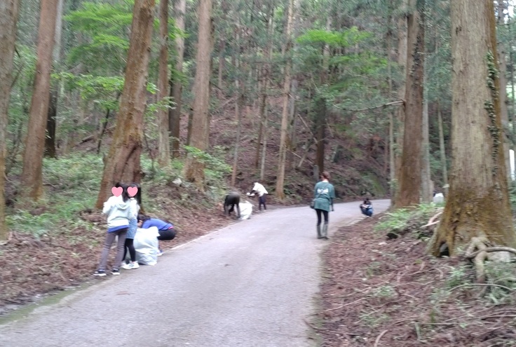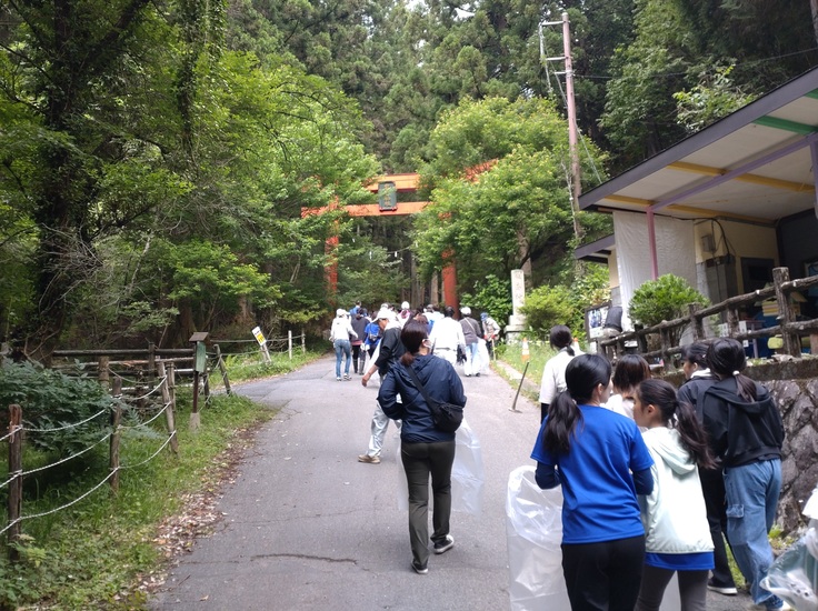 観光協会のメンバーは、側溝に詰まった枯れ枝・枯れ葉・土砂などをかき出しながら、お社付近まで登っていきます。これが結構な重労働なのですが、今日は子どもたちの元気な声が響き渡り、その声に励まされていつもより笑顔がこぼれます。