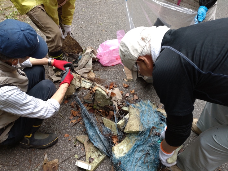 実は、沢の中に困った落し物がありまして…拾い上げてみると、かつてはブルーシートに包まれていたであろう、発砲スチロール。不法投棄はいけません。