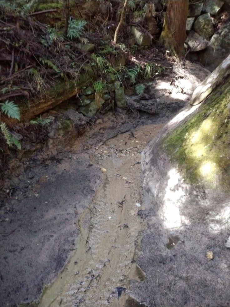 弁慶の割石周りの土砂をぬかるみの補修に再利用した関係で、