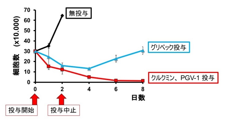 また、クルクミンから発想して出来た「PGV-1」も同じ作用を持っていることを確認しました。もしかしたら将来的には、「PGV-1」は「再発も抑える飲む抗がん剤」として完成できるかもしれません。かける期待は大きく、これからも将来の医療の発展のために邁進していきたいと思います。