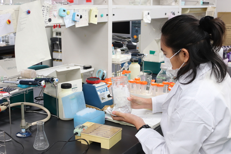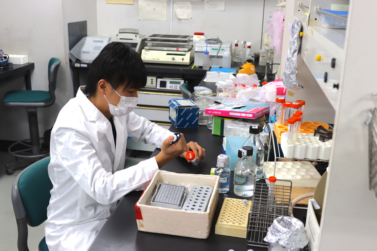 ▲新型コロナウイルス感染症への対策を講じ、3密を防いだ中で実験を行っています